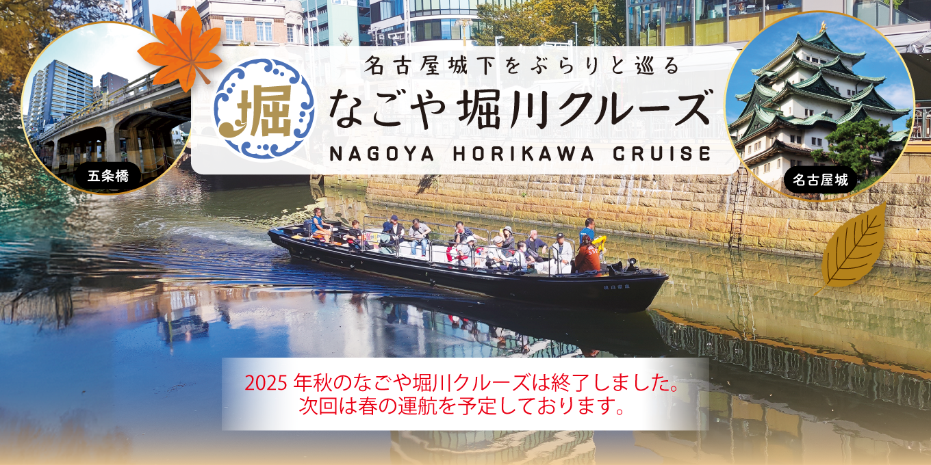 名古屋城前乗船場⇆納屋橋乗船場を定期船にて片道運航しています。